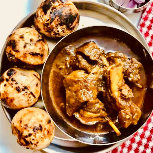 Savor the authentic taste of Bihar with our Litti Mutton, a perfect blend of rustic flavors and tender mutton. This traditional dish features golden-brown littis—baked wheat dough balls stuffed with sattu (roasted gram flour)—served with a rich, aromatic mutton curry that is slow-cooked to perfection.